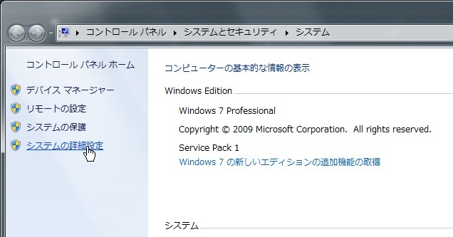 2.システムの詳細設定を開く