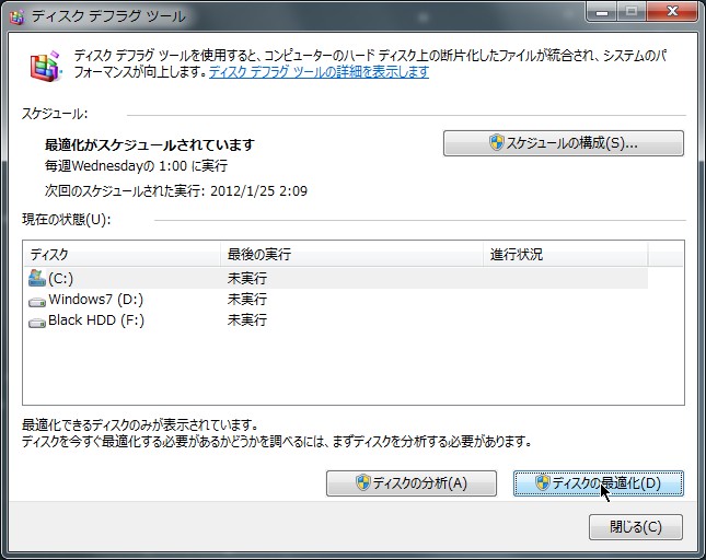 私の場合、Cドライブを最適化するのに1時間程度かかりました。